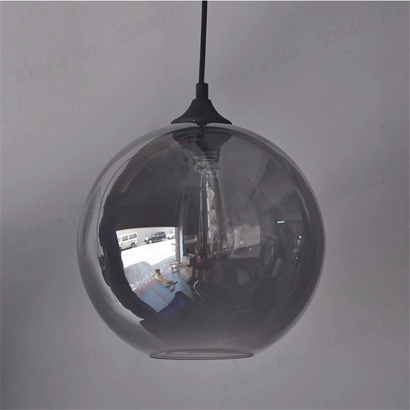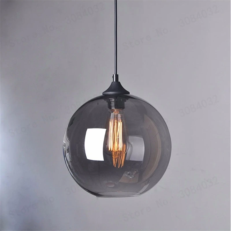 BDBQBL LED Loft Smoke Gray Glass Ball Pendant Lamp Bowl Hanging Lights Lamp kitchen living room bed