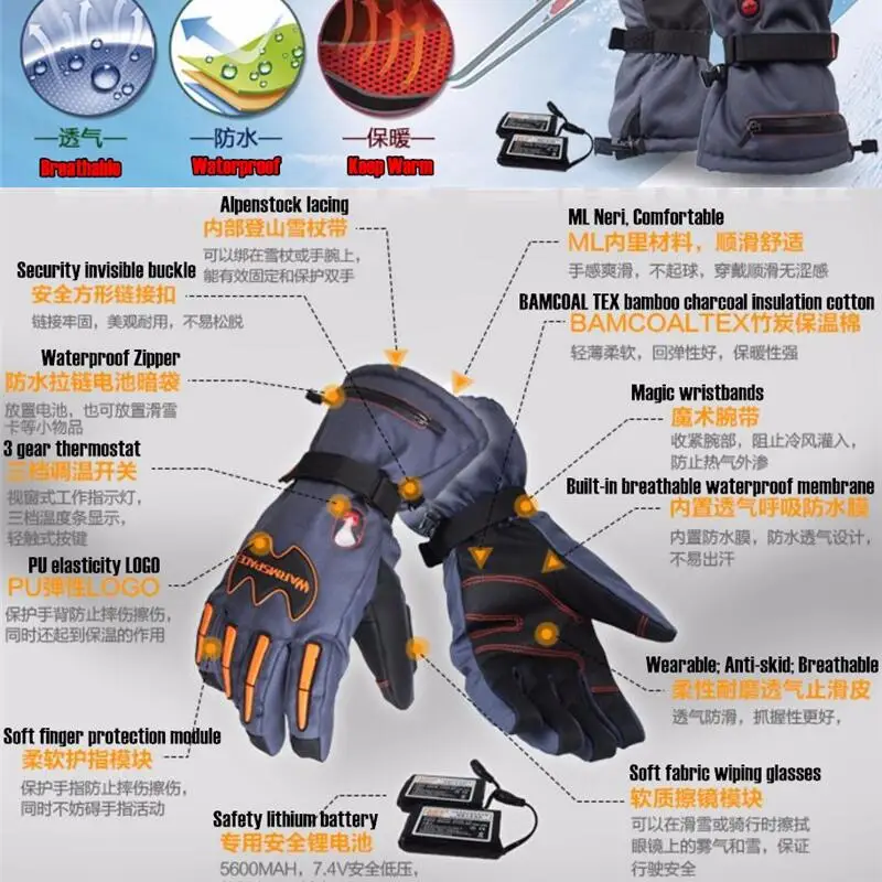 Clearance 5600MAH Smart Electric Heat GlovesSki Waterproof Lithium Battery Self Heating5 Fingers&Ha