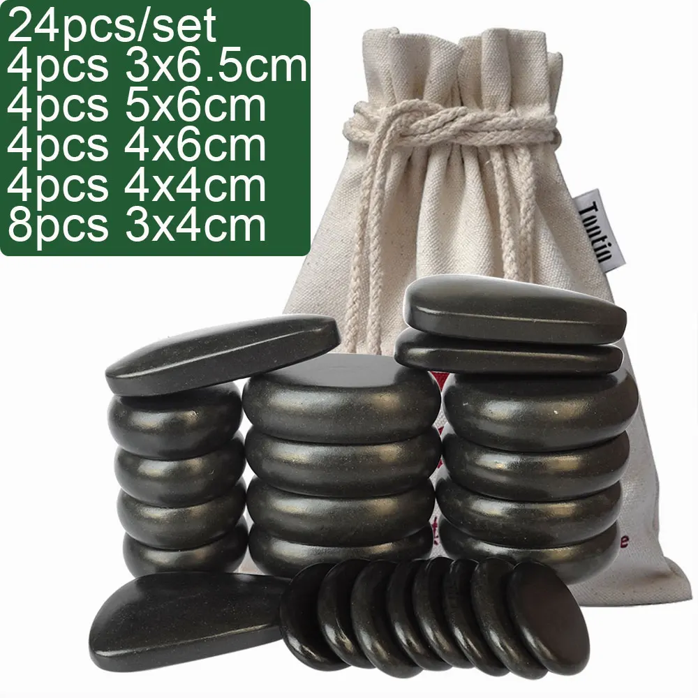 24pcs/set Hot Massage Energy Body Basalt Stone set Beauty Salon SPA with Thick Canvas Heating bag h