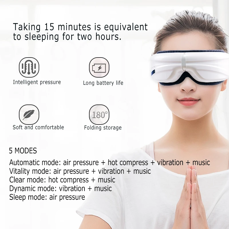 Wireless Eye Massager Air Compression Eye Massage with Music Smart Eye Massage Heated Goggles Vibra