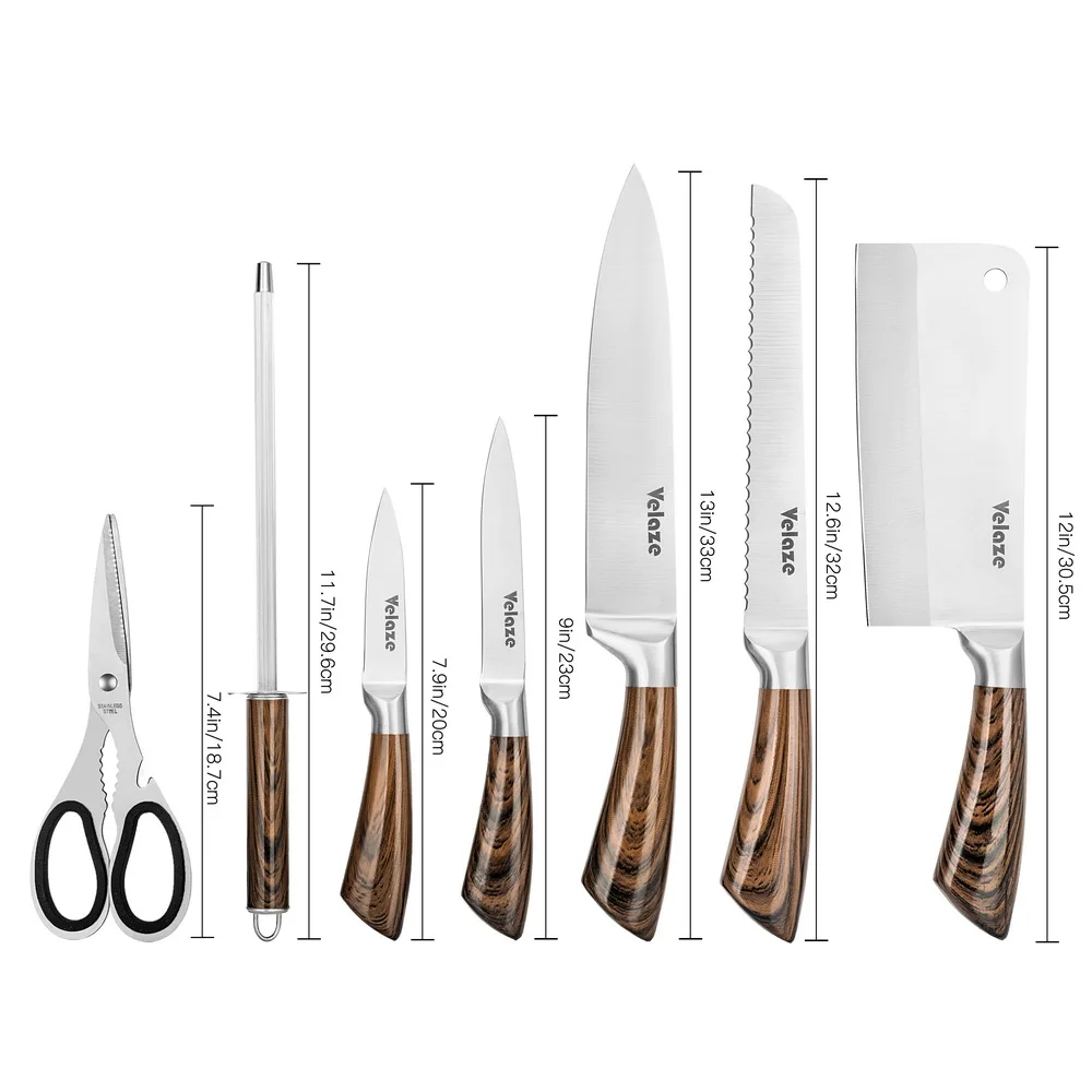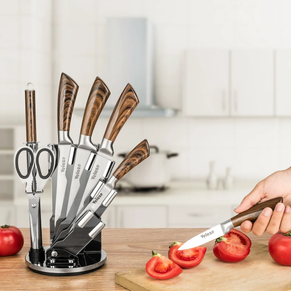 HOT SALE Velaze 8 Piece Stainless Steel Kitchen Knives Set with Spinning Block Chef Slicing Bread Fruit Pari