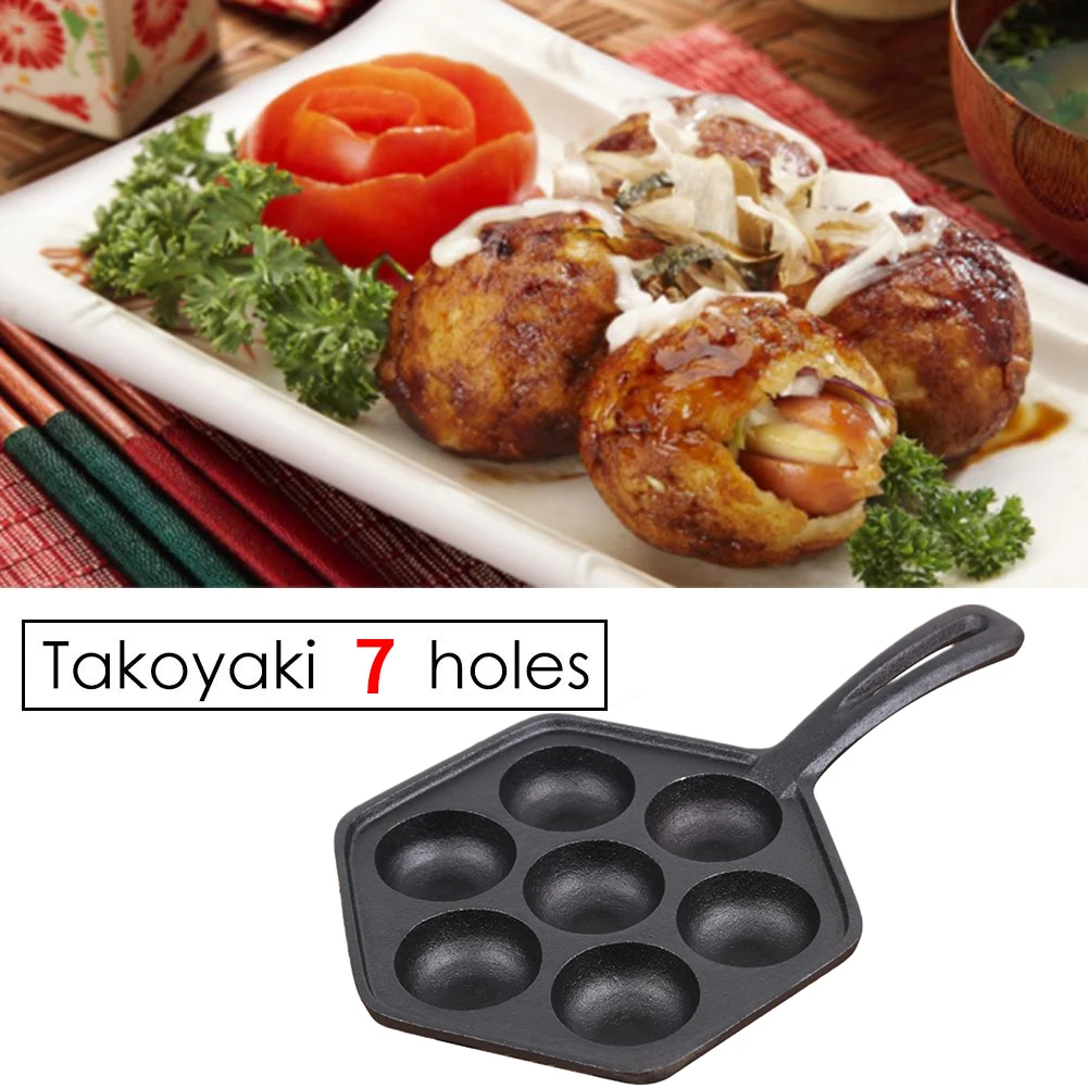 Non Stick Hexagon Hanging Takoyaki Mold Portable Stuffed Griddle With Handle Meatball Cast Iron 7 H