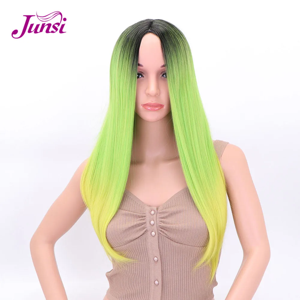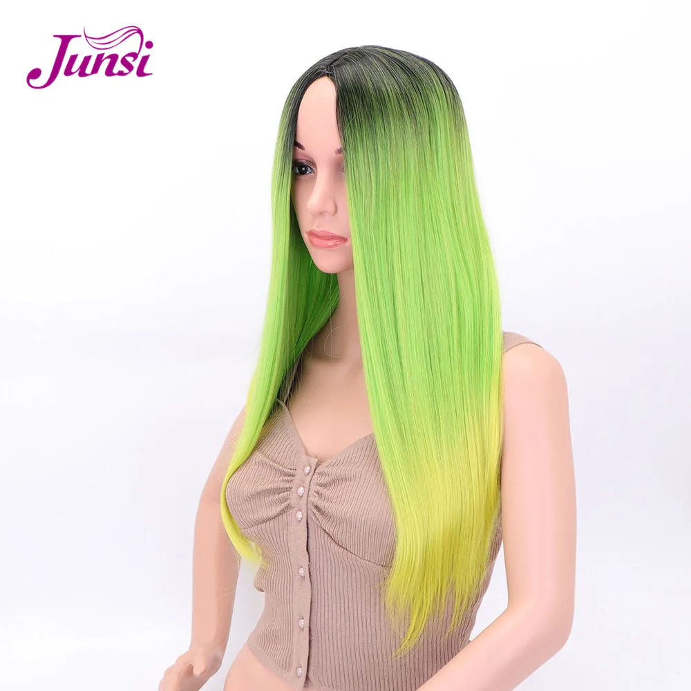 BEST QUALITY Long Green Yellow Synthetic Lolita Wigs for Ombre Color Cosplay Wigs Heat Resistant Hair